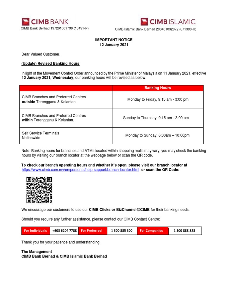 Cimb Menukar Waktu Operasi Di Semua Cawangan Dan Terminal Layan Diri Mereka